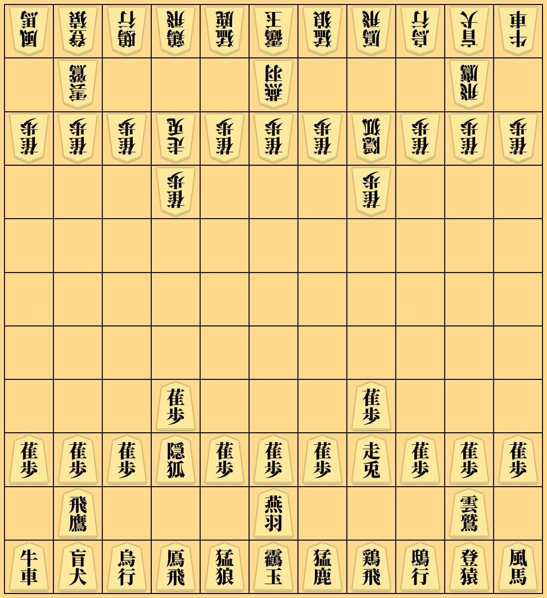 配置される駒の種類が左右対称になっていないことや、動物の名前が付けられた駒が多く存在することが特徴です。